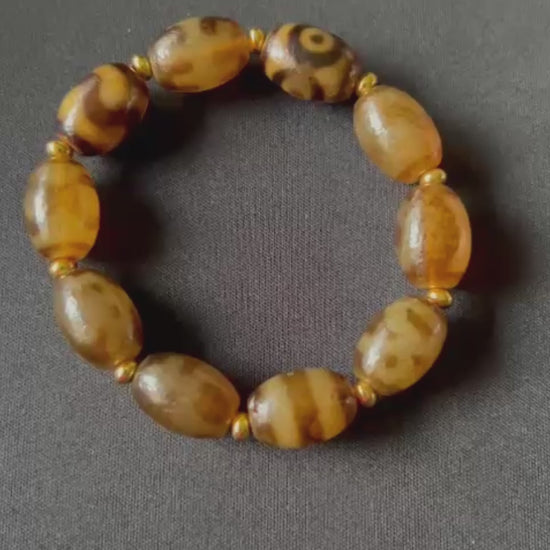 This multi-Dzi bracelet is a blend of highly auspicious and sacred symbols: