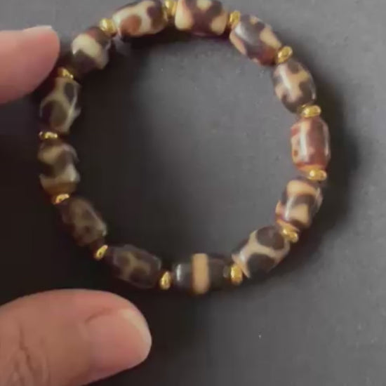 An 8mm Multi Dzi Bead Bracelet is a spiritual and cultural accessory often worn for protection, luck, and energy balance. The Dzi beads, originating from Tibetan and Himalayan regions, are ancient, sacred stones believed to carry mystical powers.